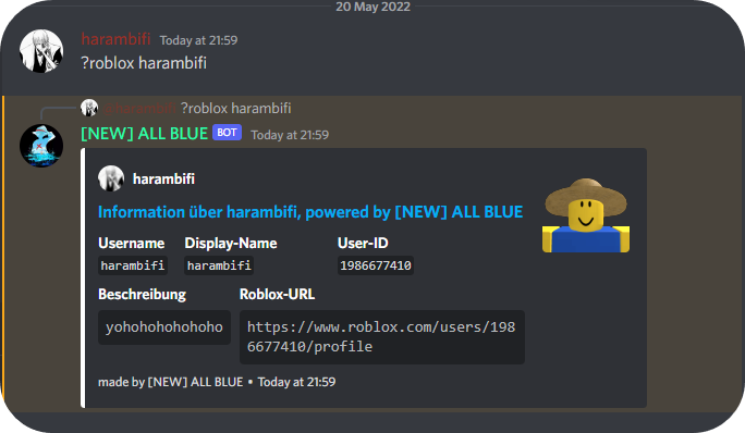Willkommen bei All Blue, wir sind eine Gruppe, die einen Bot und einen GPO Server veranstalten. Wir hoffen auf eine großartige Erfahrung beiderseits..